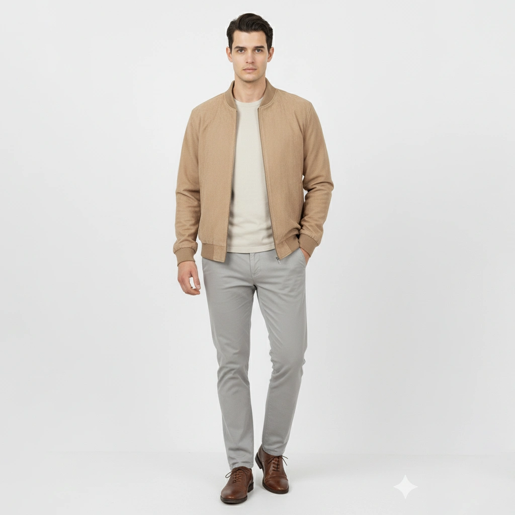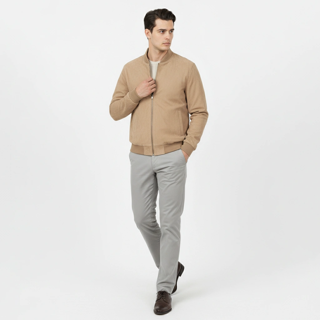 Elevate your everyday style with the Men’s Beige Faux Suede Bomber Jacket by Coder Stitch. Crafted from soft, high-quality faux suede, this jacket offers a modern, minimalist look with exceptional comfort and durability — perfect for smart casual wear all year round.