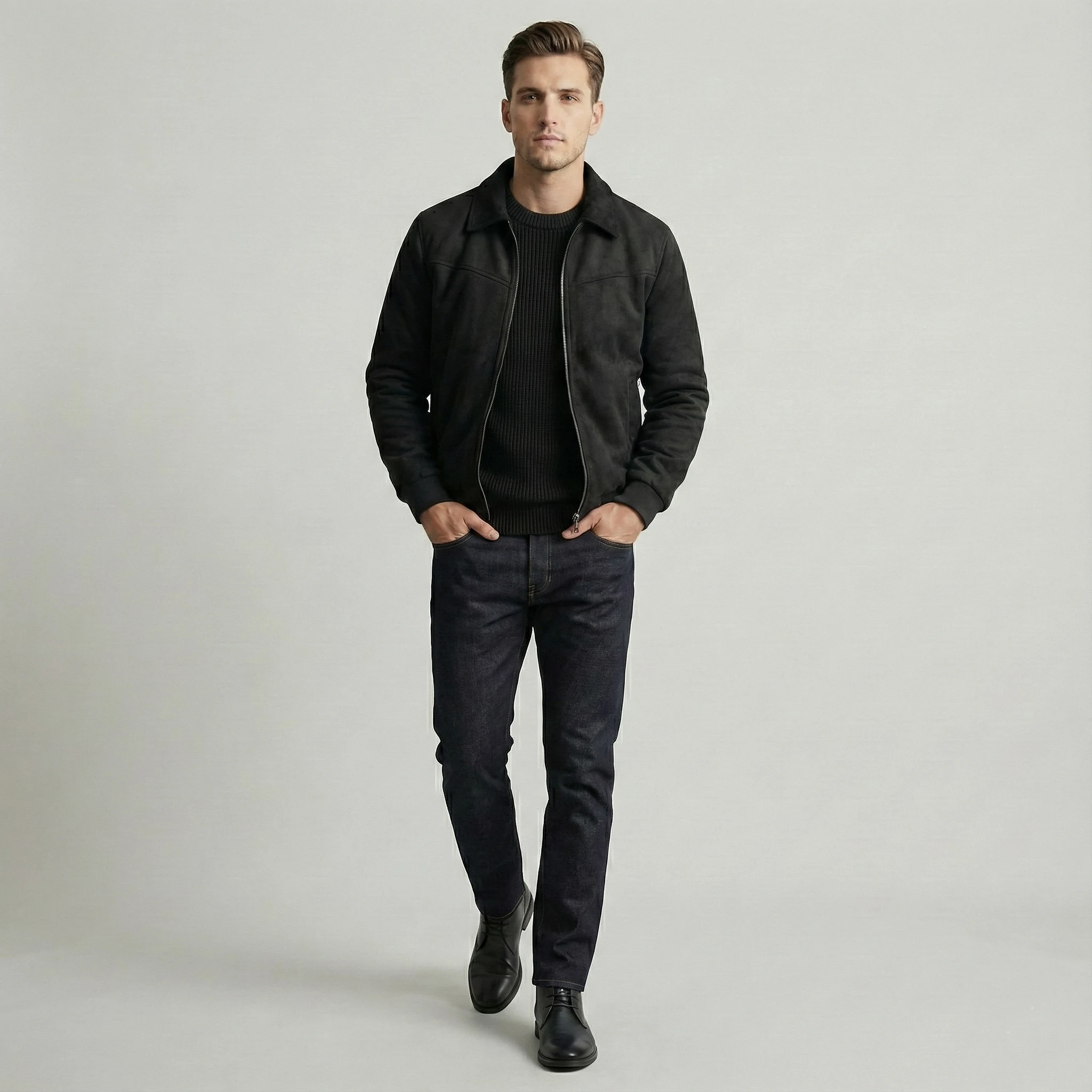 Upgrade your winter style with this premium Black Suede Jacket, featuring a soft texture, comfortable inner lining, and a clean modern design perfect for casual and smart-casual outfits. Ideal for everyday wear with jeans or chinos.