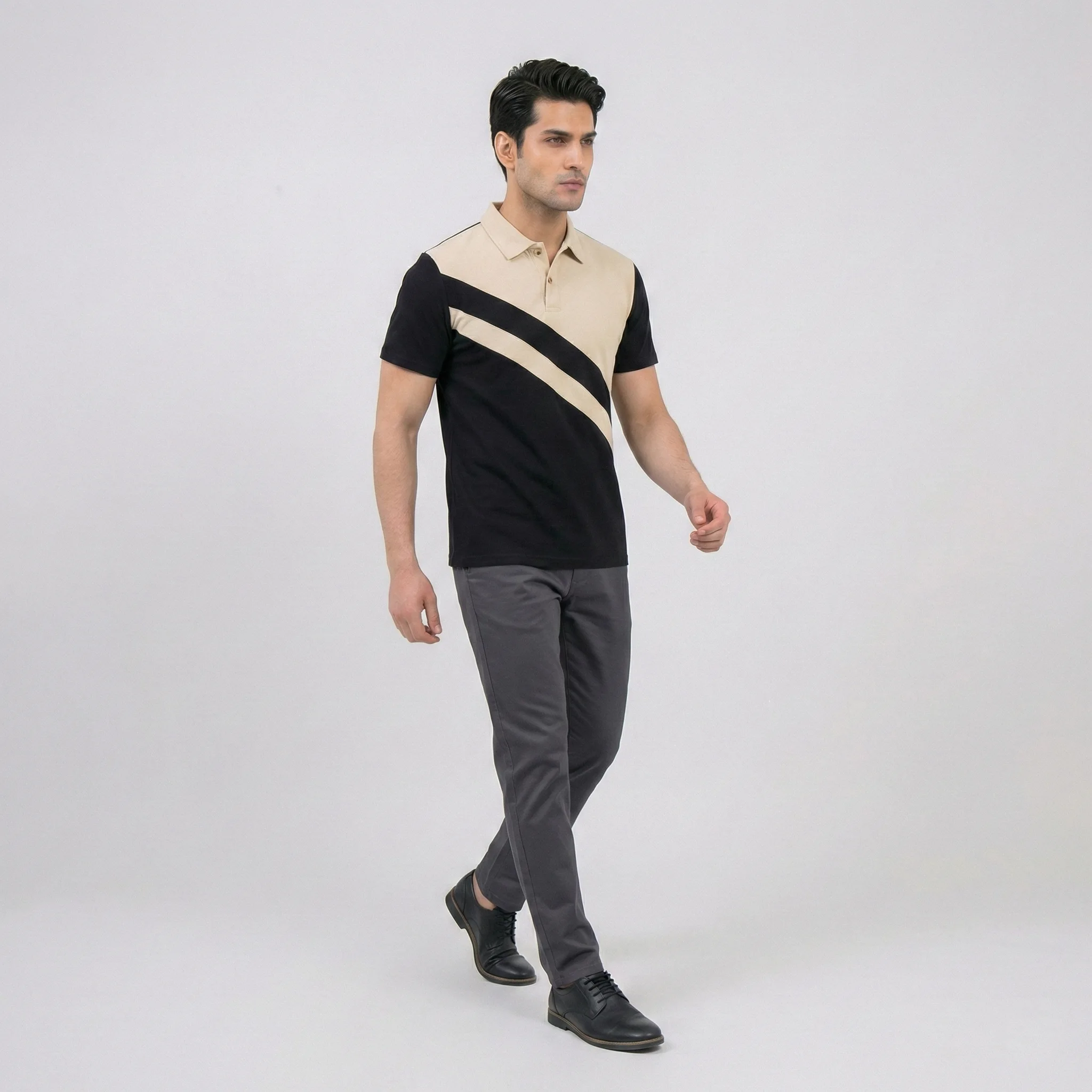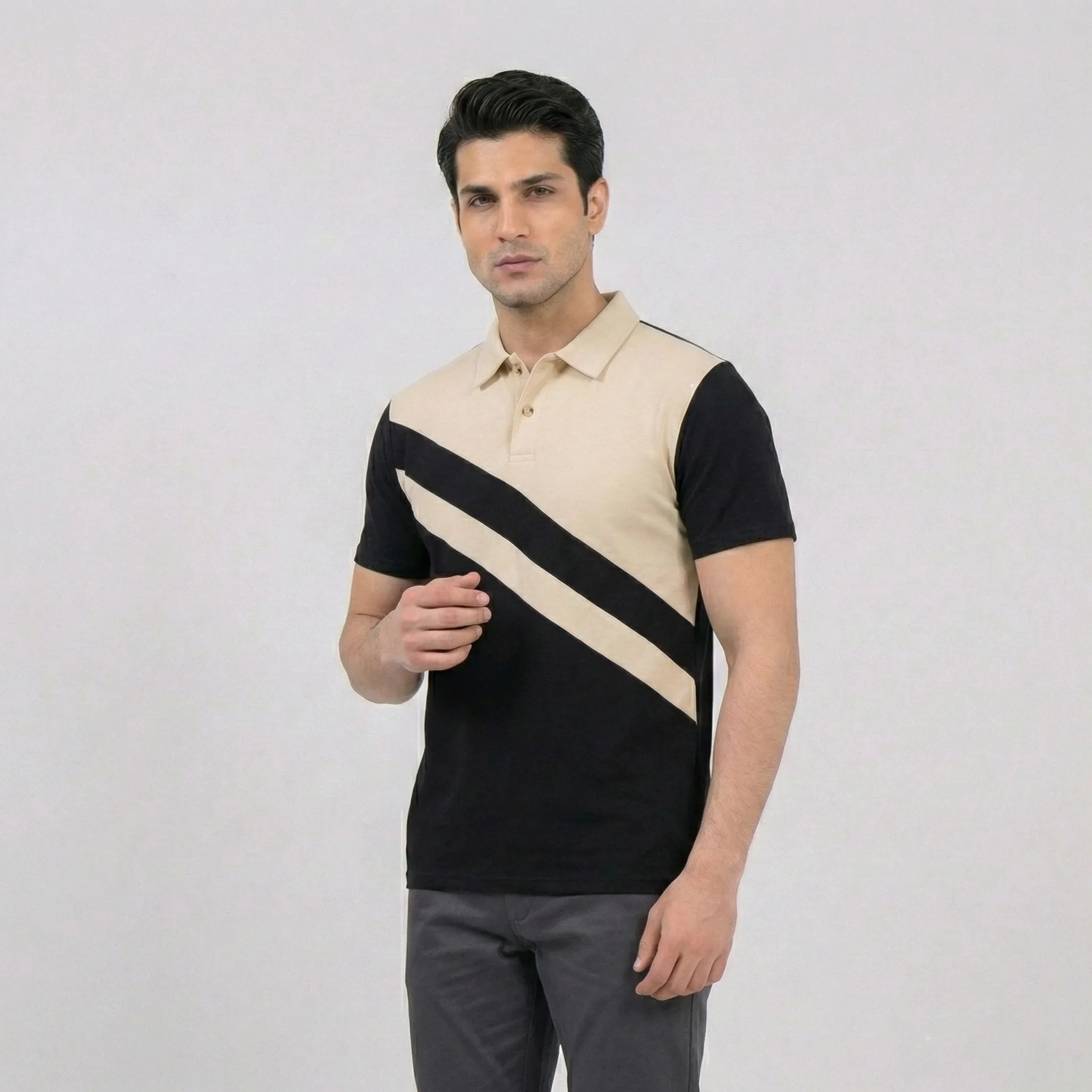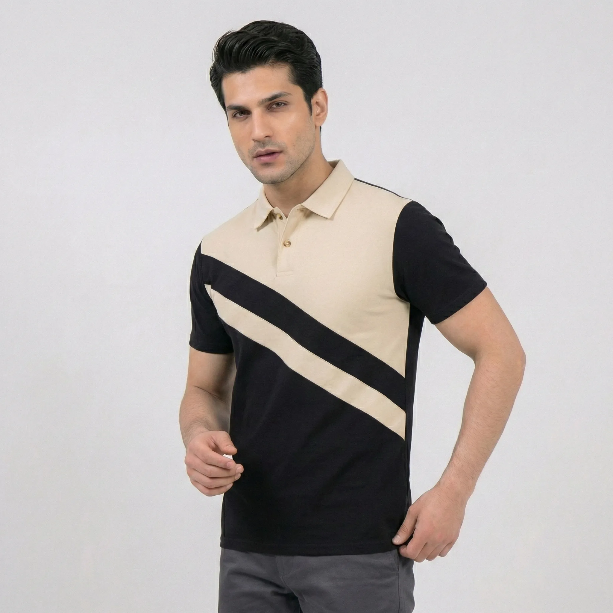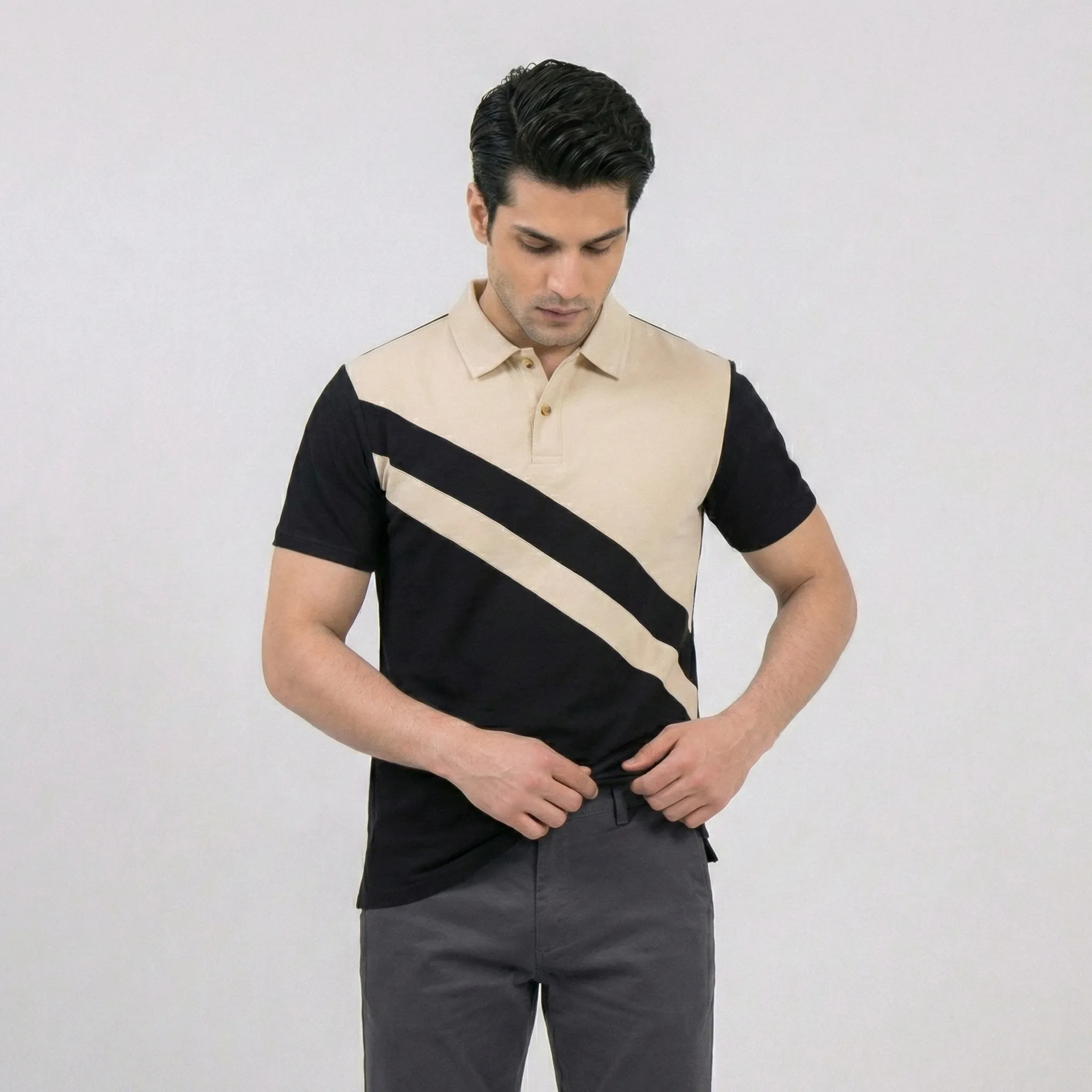 Make a bold statement with this Diagonal Colorblock Polo. Featuring a unique beige and black asymmetric design and a refined tailored fit, it’s the perfect blend of athletic heritage and modern urban style. Lightweight, breathable, and unmistakably sharp.