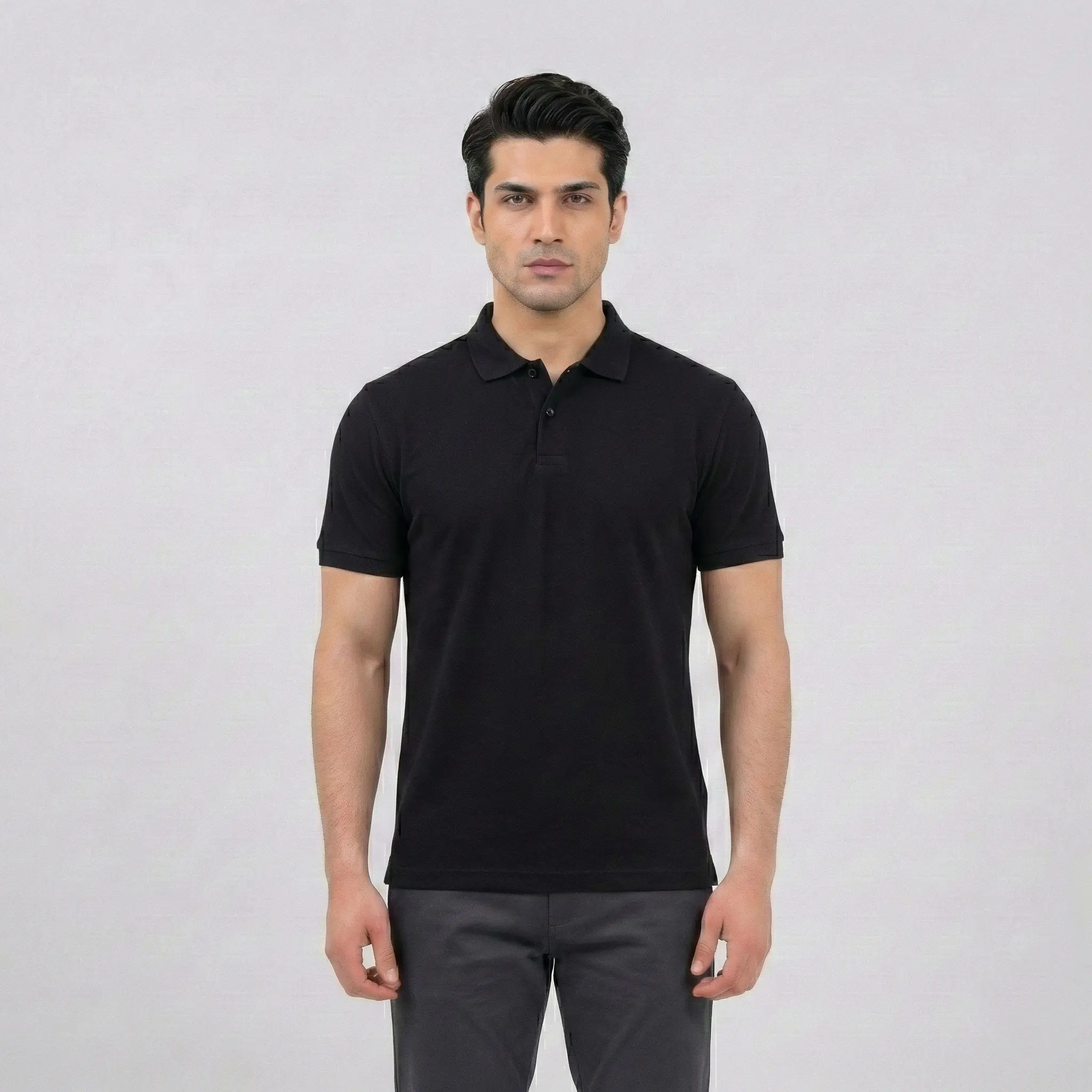 The ultimate wardrobe foundation. Our Jet Black Pique Polo offers a sharp, modern fit in a breathable cotton-knit fabric. Featuring a monochromatic design and premium finish, it’s the perfect versatile piece for any occasion.