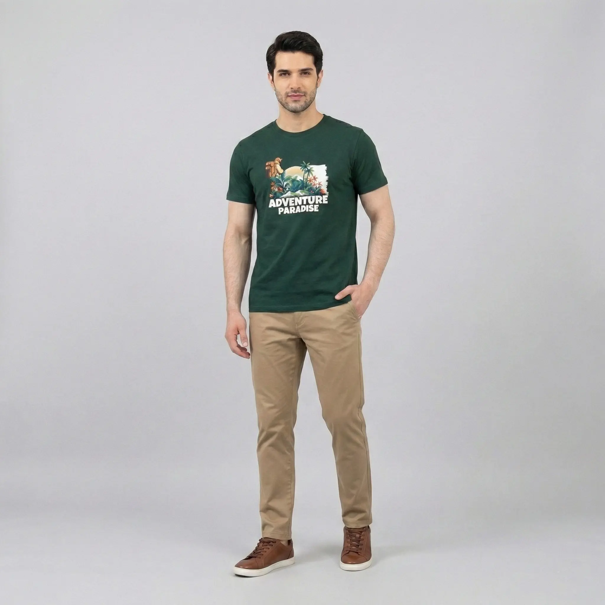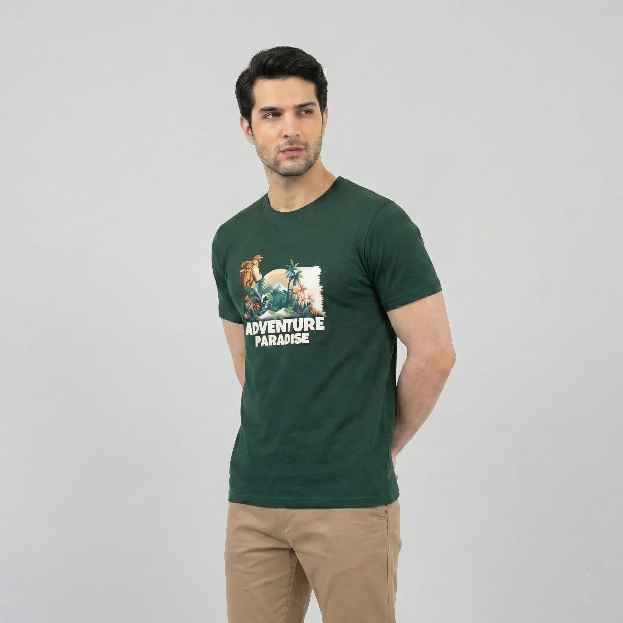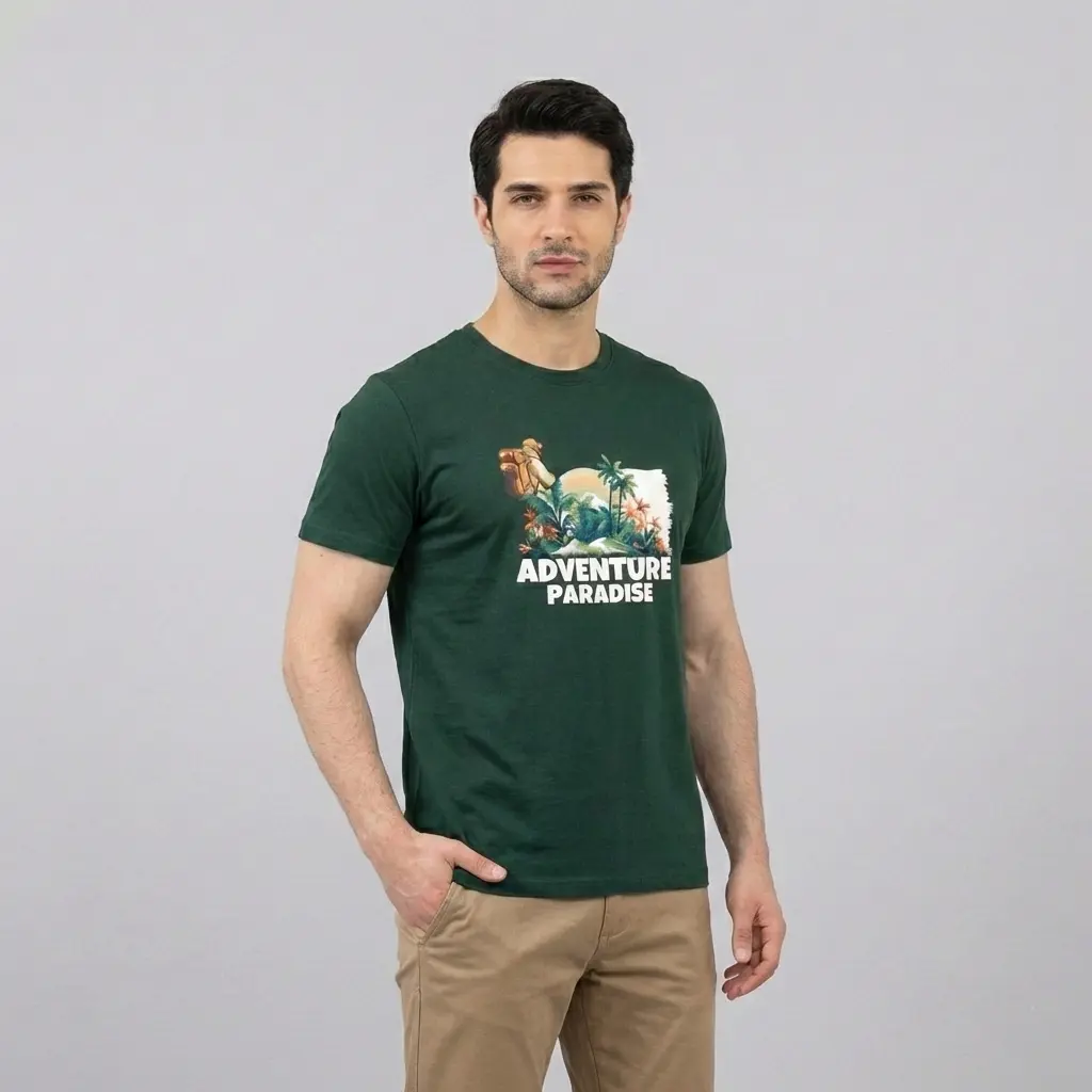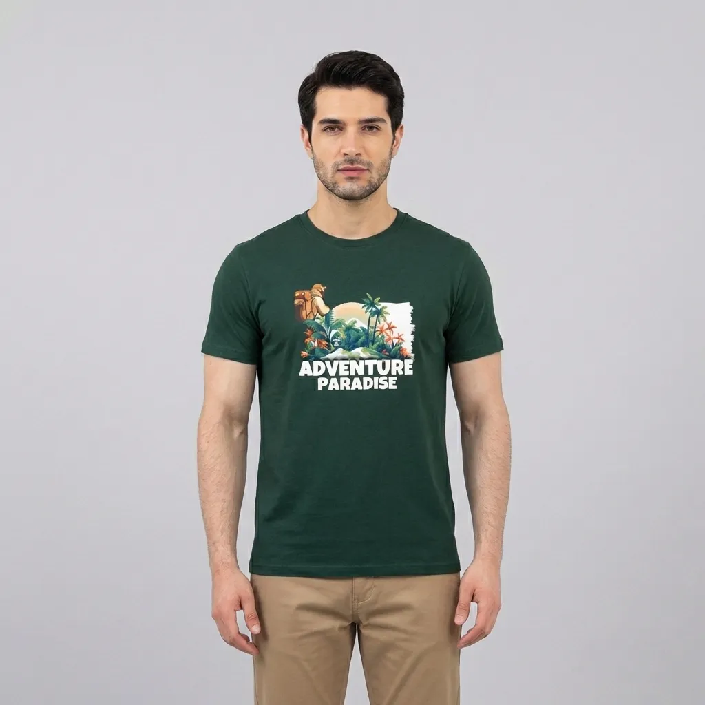 Experience ultimate comfort and style with the Adventure Paradise Graphic T-Shirt for Men. Made from 100% premium cotton, this breathable and lightweight tee features a vibrant tropical adventure print, perfect for casual wear, travel, and outdoor activities. Its regular fit and round neck design ensure a timeless, relaxed look.