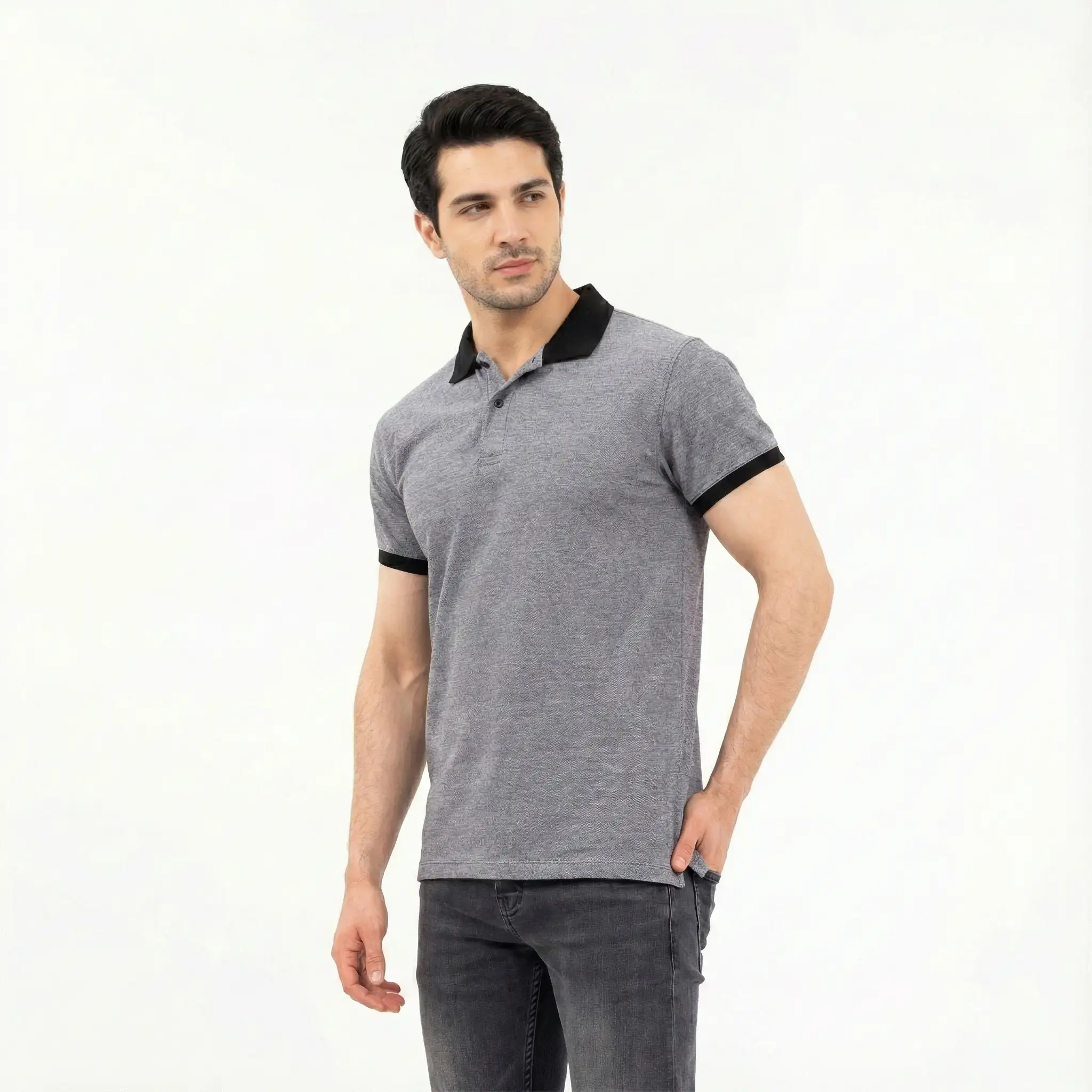 Upgrade your wardrobe with this stylish grey polo shirt featuring a sleek black collar. Perfect for casual and semi-formal occasions, crafted from premium fabric for lasting comfort and a modern fit. Ideal for everyday wear.