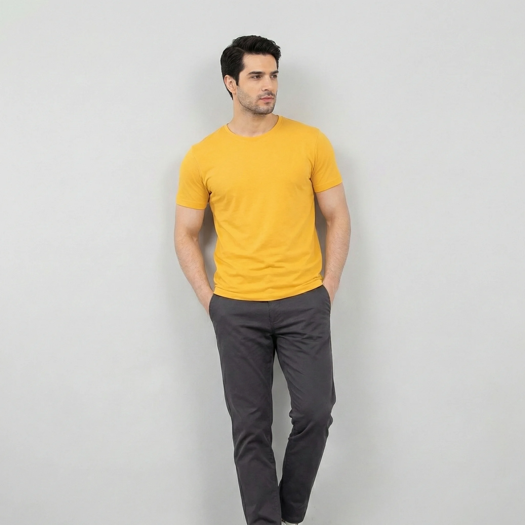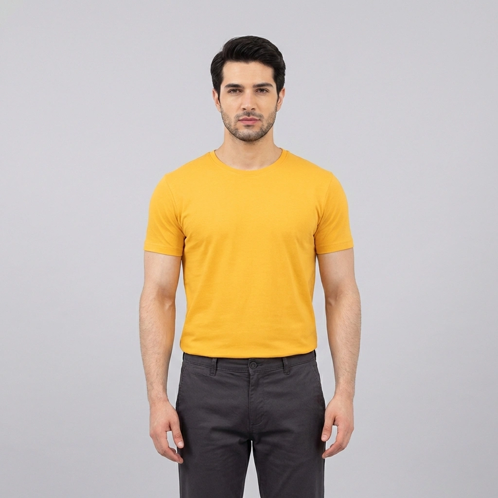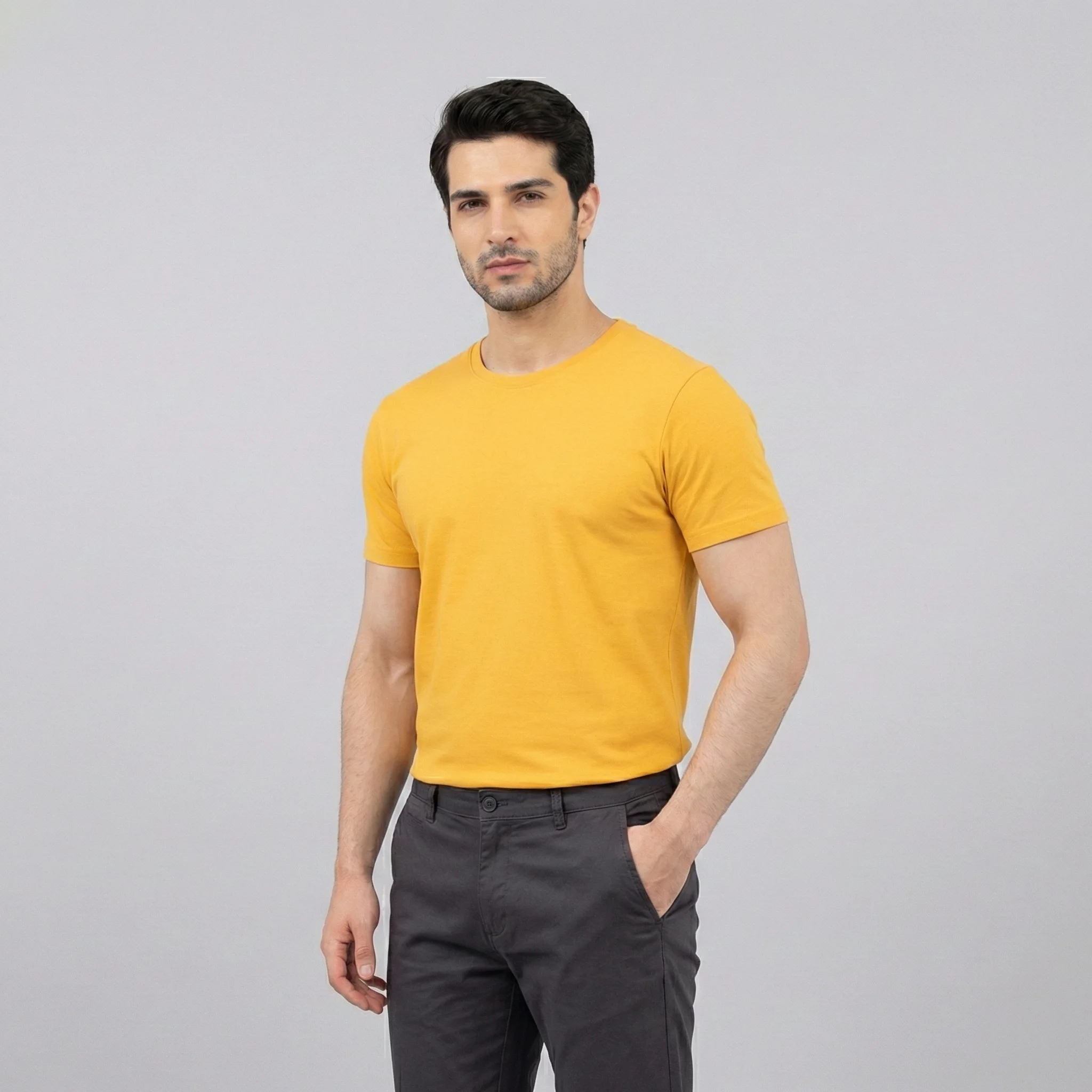 Stay stylish and comfortable with our Men’s Mustard yellow Crew Neck T-Shirt, crafted from 100% airy cotton fabric for a soft, breathable, and versatile fit. Perfect for casual wear or layering.