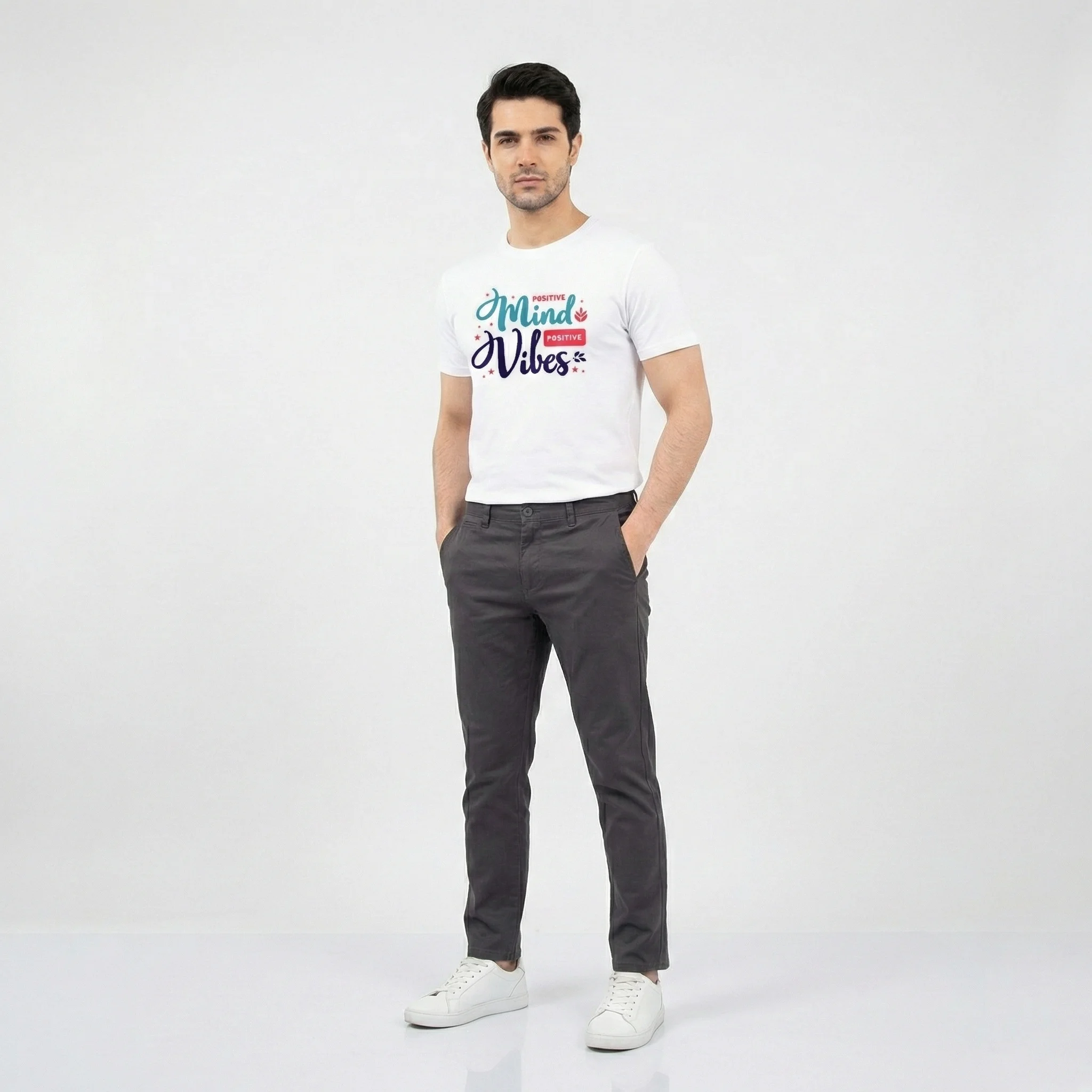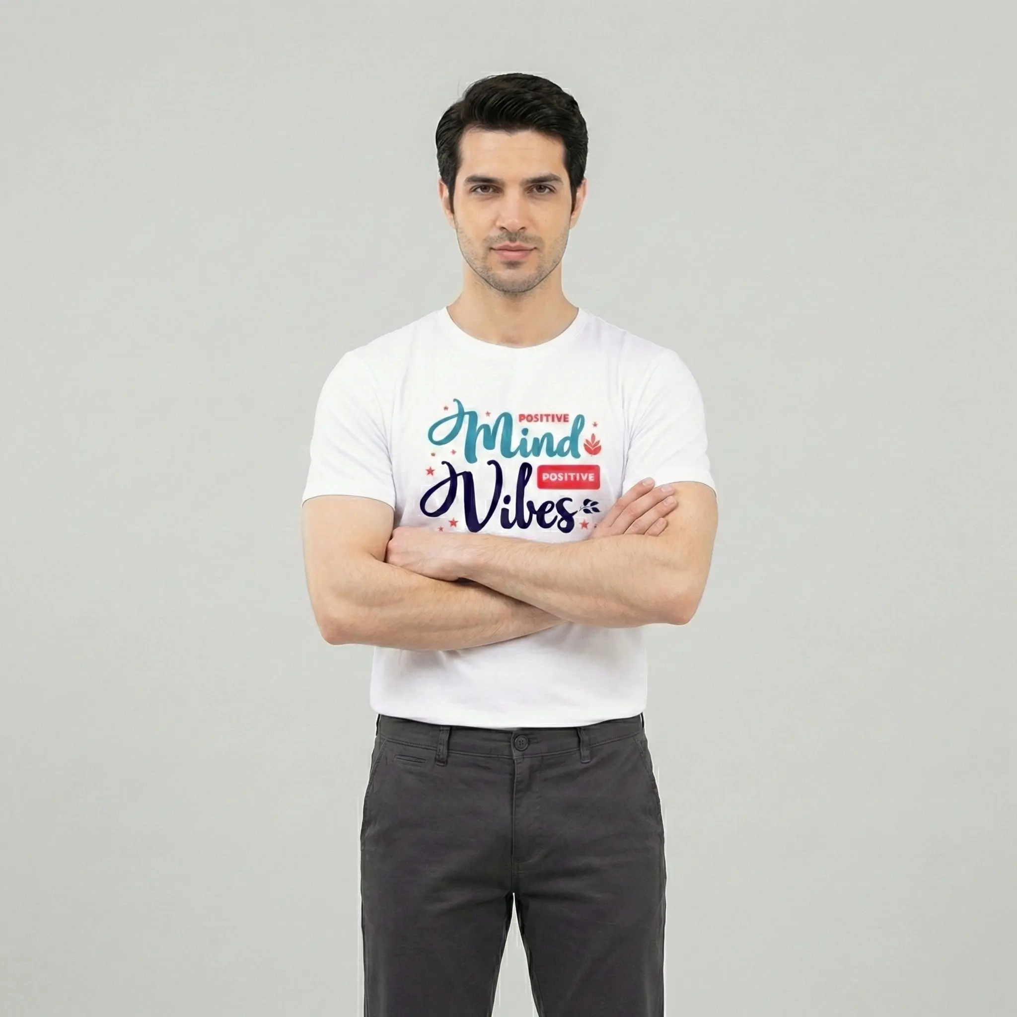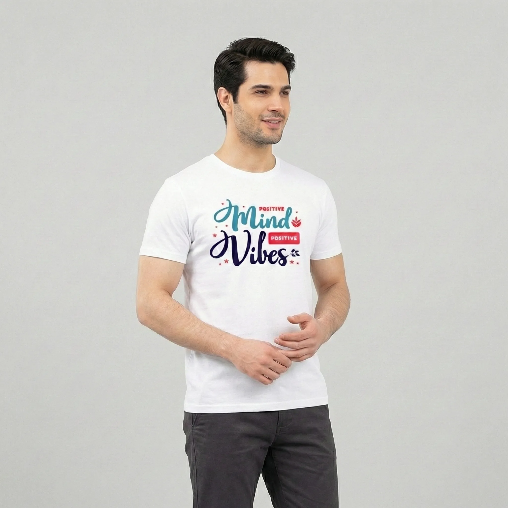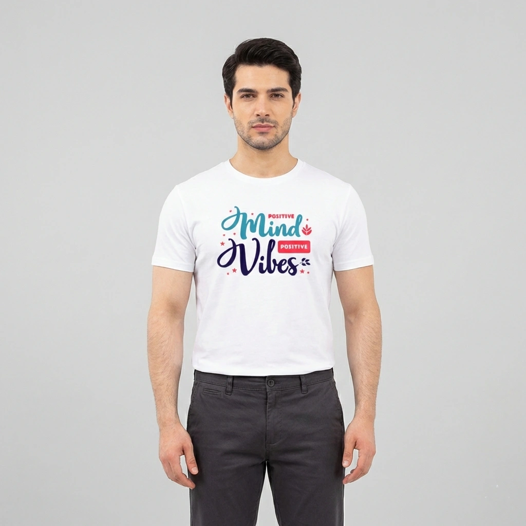 Elevate your casual style with the Positive Mind Vibes Printed White T-Shirt for Men, designed for those who believe in spreading positivity wherever they go. Made from 100% premium cotton, this ultra-soft and breathable tee ensures all-day comfort while keeping you cool and stylish. The high-quality graphic print features an uplifting “Positive Mind, Positive Vibes” design, making it perfect for those who love motivational fashion.